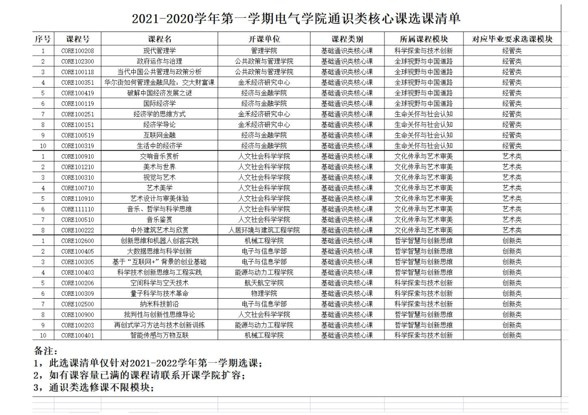 下一篇:2020-2021学年小学期电气学院通识类核心课分类选课清单