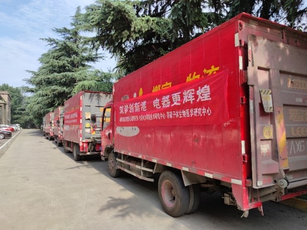 在西迁精神的强烈鼓舞下,电器三大研究所/中心师生及设备分别从兴庆校区和曲江校区出发,以昂扬的斗志与积极向上精神风貌向创新港进发,怀着对新港建设的憧憬和对学科发展的必胜决心扬帆起航。