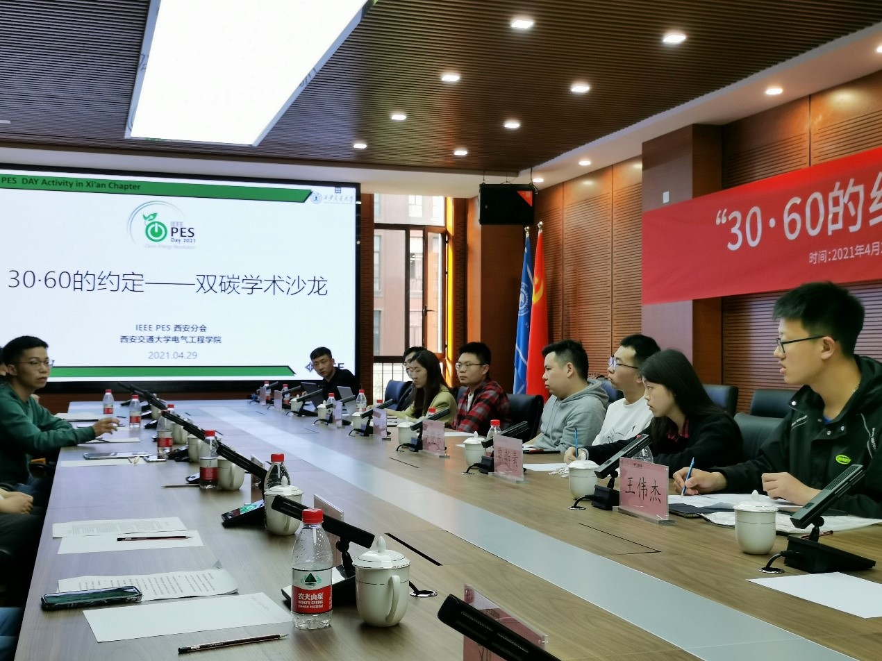 会议伊始,同学们集体观看视频,学习了习近平总书记于2020年4月22日来交大视察时的讲话以及在第七十五届联合国大会一般性辩论上发表的重要讲话。习总书记在讲话中提到,中国“二氧化碳排放力争于2030年前达到峰值,努力争取2060年前实现碳中和”。视频的最后,联合国常务副秘书长阿明娜·穆罕默德女士对中国碳达峰碳中和成果表示高度的认可与支持。随后,主持人李加才向大家介绍了IEEE PES和PES DAY以及本次沙龙活动的主旨。各位同学围绕“双碳”目标,结合自身科研学习,展开了深入的交流和热烈的讨论。