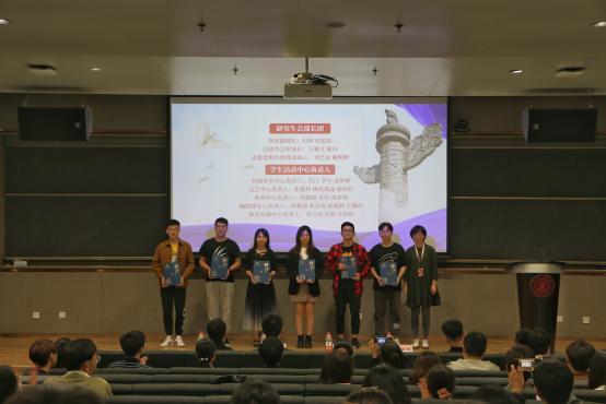2020届研究生会执行主席申超领作主题发言,他从个人和集体两个维度,围绕“为什么选择成为学生干部?”和“成为学生干部能获得什么?”分享心得。他表示,担任学生干部,一方面是为了自己各方面能力和素质的锻炼,另一方面更重要的是为了服务于集体,为集体做贡献。他结合研会的工作经历,表示研会是个锻炼工作能力、组织能力、信息获取能力并且能够打开格局的平台。 “风物长宜放眼量”,他寄语同学们眼光要放长远,不为眼前的得失而患得患失,才能走的更远。在为当下服务的同时,又要时刻增长自己未来的服务能力,即在工作中不断提升自己的价值。最后,申超领同学希望研会新成员作为个人可以格物致知,诚意正心,修身齐家治国平天下;作为集体可以在时代的浪潮头上翻起自己的浪花。