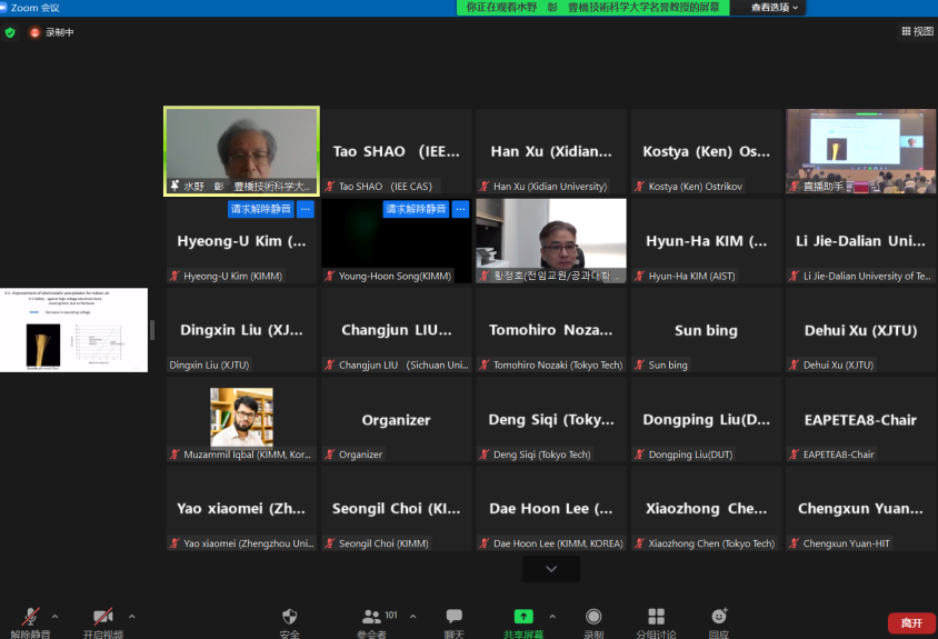 电力设备电气绝缘国家重点实验室常务副主任李盛涛教授代表承办单位致辞;中国电工技术学会等离子体及应用专委会主任委员邵涛教授代表协办单位致辞;日本产业经济研究所Hyun-ha Kim博士代表日方参会人员致辞;韩国国立机械研究所Young-Hoon Song博士代表韩方参会人员致辞,并介绍了下届会议的初步安排。