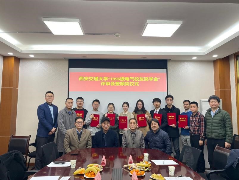 12月14日,电气学院召开“1996级电气校友奖学金”评审会暨颁奖仪式,评审委员会主席阎治安教授、委员张彦斌教授、刘崇新教授、王仲奕教授、96级电气校友李飞(西安石油大学教授)、96级电气校友施荣(国网陕西省电力公司经济技术研究院教授级高工),“1996级电气校友奖学金”管理委员会主任、电气学院党委副书记宋杰,管理委员会副主任陈玉出席评审。评审委员会根据申请人学业成绩、科学研究成果和社会公益活动表现综合评定,最终评选出电测、发电、电机、绝缘、电器、三电、工企、高压教研室各1名,共计8名硕士三年级研究生,授予本年度“1996级电气校友奖学金”。
