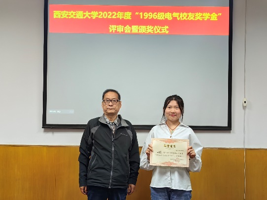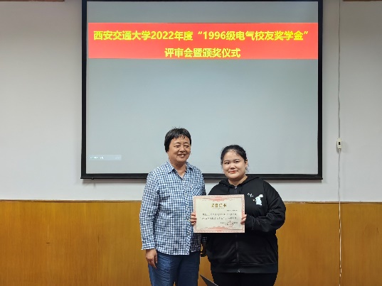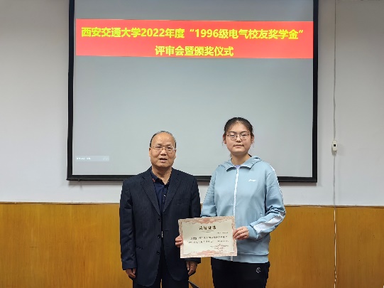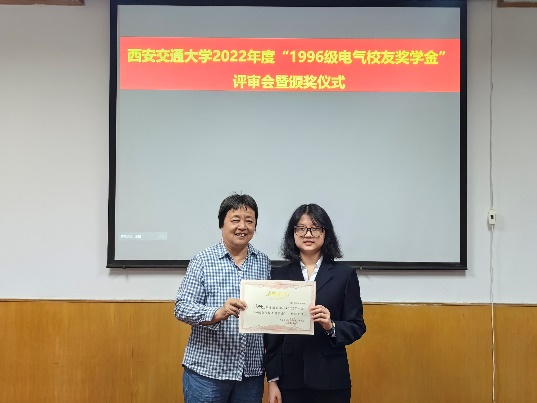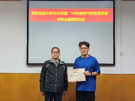 “1996级电气校友奖学金”由电气学院1996级校友集体捐赠和募集,该奖学金每年评选一次,今年是第三次颁发。用以鼓励电气学院品行端正、成绩优秀的学生,其奖励标准为本科生每人3000元,本奖学金与国家奖学金、其他社会奖学金不可兼得。