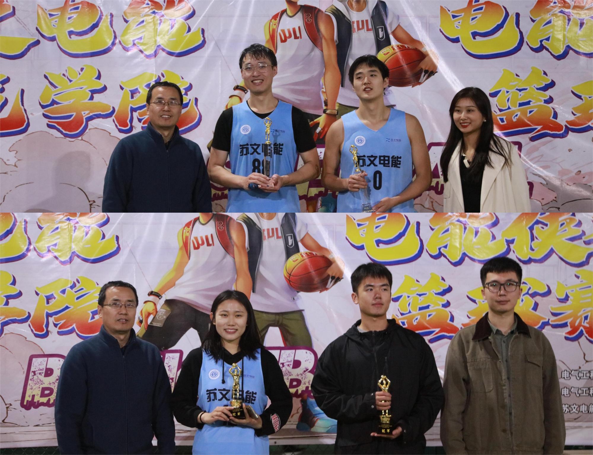 在颁奖仪式上,电气学院党委副书记宋杰老师,团委副书记刘涛老师,辅导员柴冠坤、王凯老师为获奖队伍和最有价值球员(MVP)颁奖。