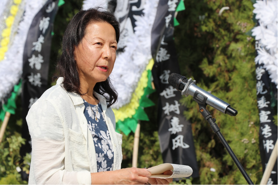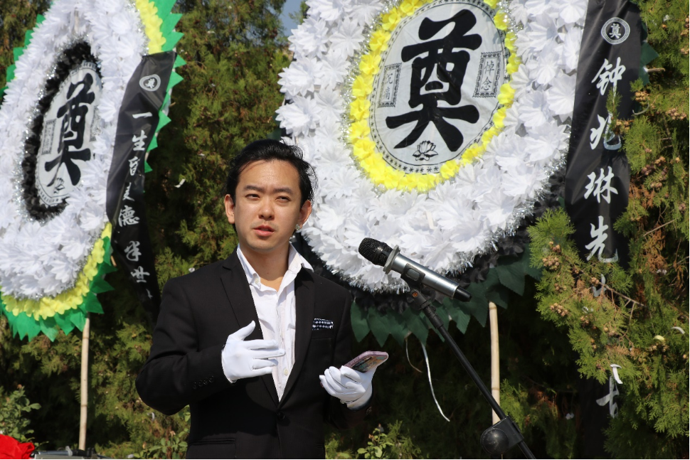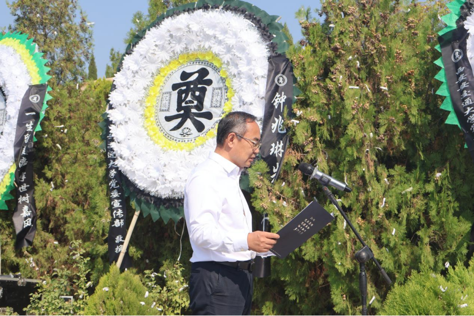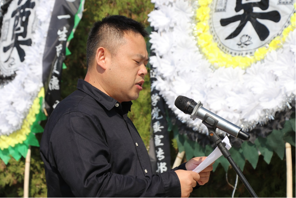 党委书记梁得亮主持仪式,介绍来宾及赠送挽联、花圈的单位及个人。