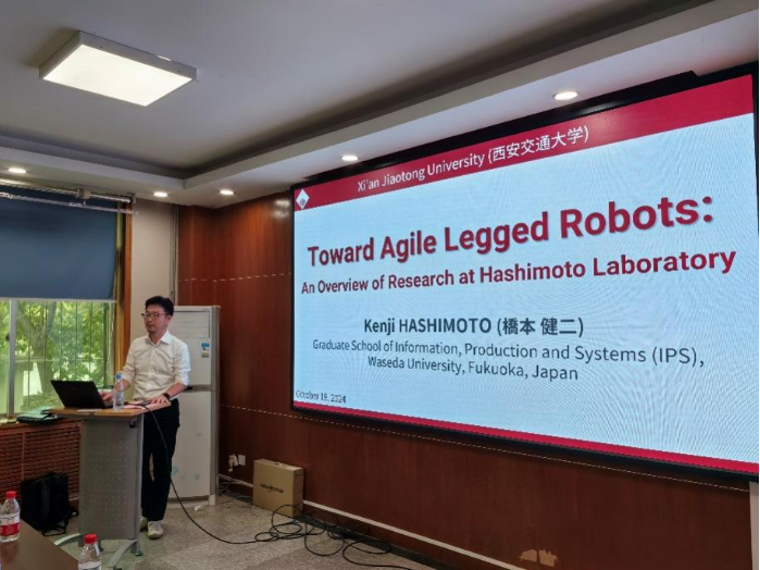 桥本健二教授作题为“Toward Agile Legged Robots: An Overview of Research at Hashimoto Laboratory(迈向敏捷腿型机器人:桥本实验室研究综述)”的报告。桥本实验室,以实现敏捷机器人为目标的研究,专注于开发能够适应各种环境和变化、表现出身体敏捷性并拥有快速应对复杂挑战能力的机器人。