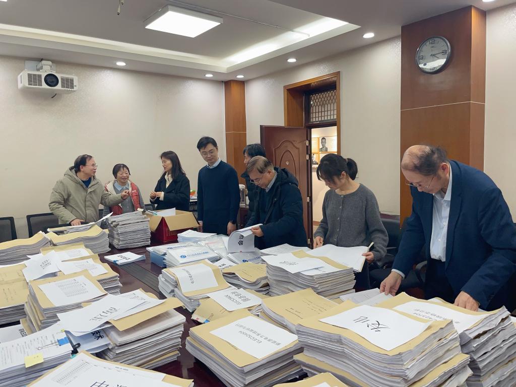 在相关教师的陪同下,专家组一行调阅了学院本科教学相关材料,包括课程试卷、毕业论文、教案、备课记录、管理文件和会议记录等。