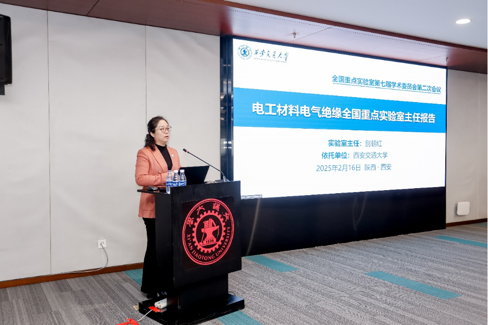 张立群代表学校向参会委员表示诚挚欢迎,向长期以来关心和支持西安交大和电工材料电气绝缘全国重点实验室工作的各位院士、专家致以衷心的感谢,并对实验室2024年取得的成绩表示祝贺。他表示,随着新一轮科技革命和产业变革的深入发展,技术创新进入前所未有的密集活动区,全国重点实验室作为国家重要的战略科技力量,肩负着服务国家战略需求的重大使命。学校会一如既往、全力支持实验室的实体化运行和内涵式高质量发展。希望实验室能继续坚持“四个面向”,汇聚国内外优质资源,开展有组织的科研,打造电工材料电气绝缘技术领域的人才培养和技术创新高地,为教育强国、科技强国和人才强国建设做出新的更大贡献。