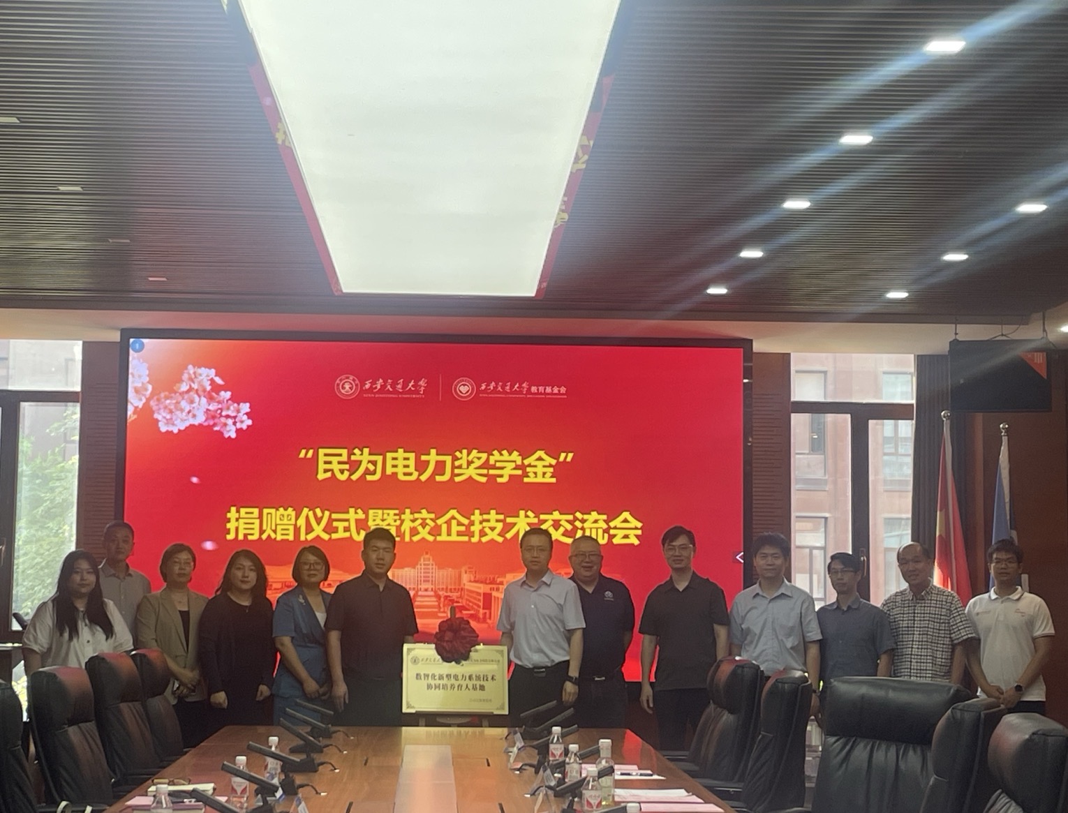 邢晓强秘书长代表学校教育基金会接收捐赠,并为民为电力颁发捐赠纪念铭牌。邢晓强秘书长和毕红霞总经理共同为“本科生校外实践教育基地”与“研究生协同培养育人基地”揭牌,这标志着校企双方在育人模式上取得了重要进展,为深化人才培养合作奠定了坚实基础。