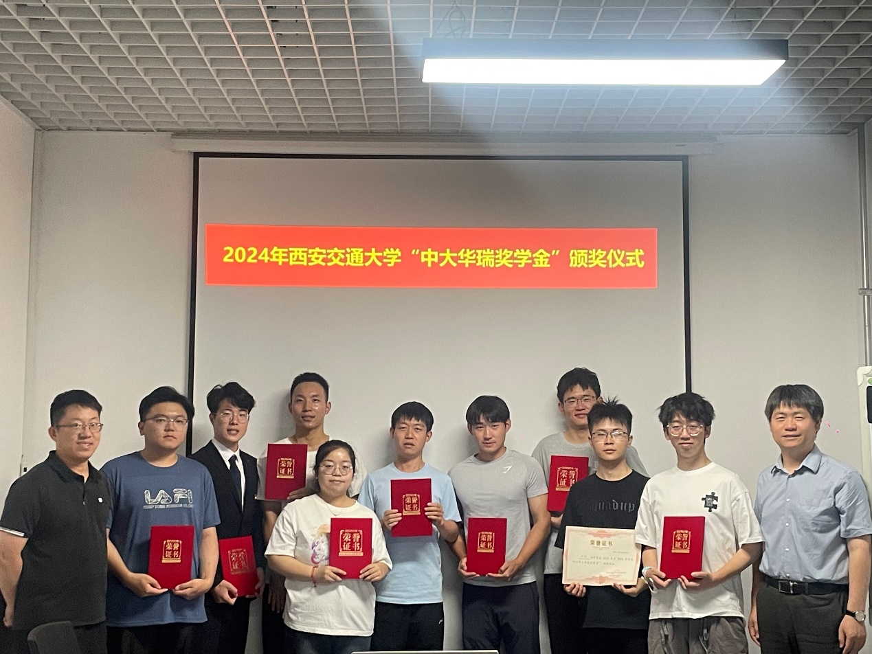 “中大华瑞奖学金”由电气学院校友四川中大华瑞能源集团有限公司蒋小春董事长捐赠,该奖学金每年评选一次,今年是第二次颁发。用以鼓励电气学院品行端正、成绩优秀的学生,其奖励标准为硕士研究生每人5000元,本奖学金与国家奖学金、其他社会奖学金不可兼得。