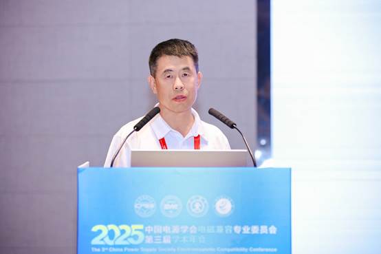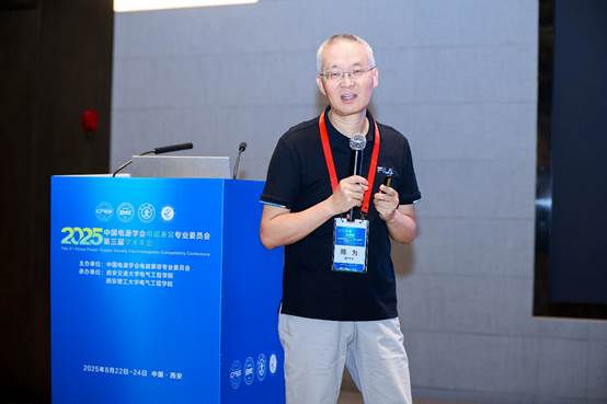 王兆阳教授分别作了题为《用于算力服务器电源的磁集成设计准则与设计方法》、《复杂电力电子系统电磁干扰主动抑制》、《曲面感性器件的非正交PEEC建模研究》、《电气化交通电驱系统电磁干扰抑制技术及应用》、《电磁时间反演理论及其定位技术应用》的大会报告。