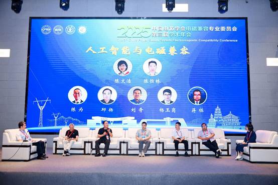 8月23日下午,圆桌论坛由陈恒林教授和陈文洁教授主持,同时邀请了福州大学大学陈为教授、西安电子科技大学邱扬教授、中国科学院新疆天文台刘奇教授、太原理工大学杨玉岗教授、华中科技大学蒋栋教授共5位专家,专家们围绕“人工智能与电磁兼容”的主题,结合自身研究经历,分享了磁性元件设计、滤波器设计与测试、建模、屏蔽等方面的科研经验,讨论了人工智能如何助力EMC优化设计,以及人工智能和大数据模型对电磁兼容研究带来的新思路、新方法,并鼓励年轻人在人工智与电磁兼容技术的交叉研究方面要大胆创新。