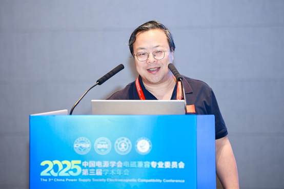 8月24日上午,工业报告环节分别由和军平教授、刘艺涛教授、裴雪军教授和江彦伟副教授主持,邀请了珠海英搏尔电气股份有限公司总工刘宏鑫分享题为《EMC技术在新能源汽车三电系统中的应用》的报告、特变电工西安电气科技有限公司研发总监万萌分享题为《光储变流器产品的EMC适应性关键技术》的报告、台达电子企业管理(上海)有限公司付琦高工分享题为《图腾柱PFC共模噪声分析与抑制措施》的报告、敏业信息科技(上海)有限公司黄敏超博士分享题为《滤无止境,探讨人工智能在EMI滤波器设计中的应用》的报告、苏州伟创电气科技股份有限公司研发总监何承曾分享题为《大功率变频器电磁干扰的发射现状及标准测试》的报告、深圳市赛盛技术有限公司技术总工石光其分享题为《大功率电源产品电磁兼容(EMC)设计关键要素与参考案例》的报告、松下家电(中国)有限公司首席工程师夏兵分享题为《家电EMC设计的可视化技术》的报告、北京航天微系统与信息技术研究所工程师杨巧分享题为《系统级封装的PISI仿真技术》的报告、中国兵器工业第二零六研究所史平君主任分享题为《工业及特殊应用场景中的电磁干扰》的报告、江西艾特磁材有限公司FAE李伟经理分享题为《一种新型低散磁高频功率一体电感设计与应用》的报告。