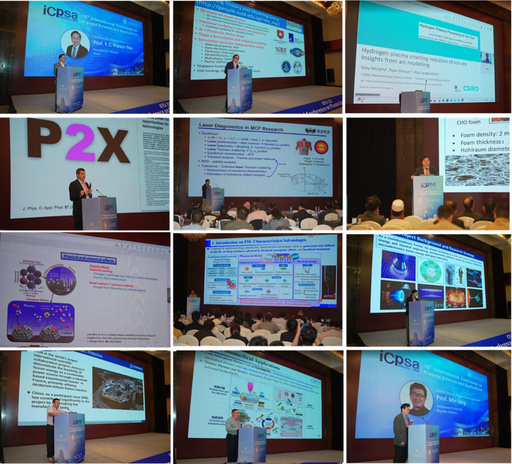 张冠军教授、韩国光云大学Min Jang教授。报告内容涵盖等离子体射流驱动磁惯性聚变、分数阶微积分在等离子体、电磁学等建模中的应用、电弧建模、等离子体能源应用、新型磁控聚变及诊断、高能量密度等离子体基本过程、等离子体催化、等离子体医学、极端等离子体环境、大功率离子源、微等离子体、等离子体电化学等前沿方向。大会报告环节分别由AAAPT创始人Sing Lee教授、Rajdeep Singh Rawat教授、张冠军教授、Francis Thio教授、国际等离子体医学协会副主席Hiromasa Tanaka教授、IEEE尼泊尔副主席Raju Khanal教授和东华大学刘亚男教授主持。