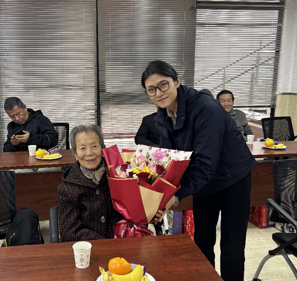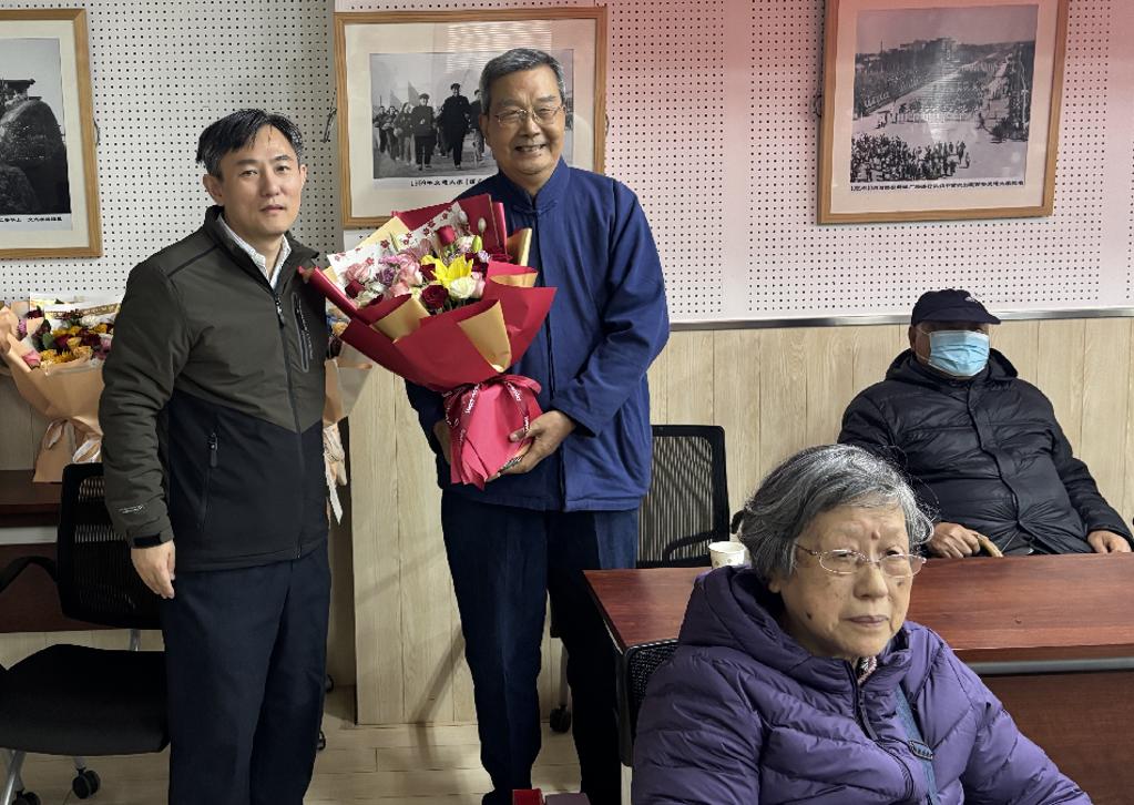 尊师重教,感恩传承。在温馨感人的氛围中,会场进入了向寿星代表致敬献花的环节。学院领导们分别向今年恰逢七十、八十、九十整寿的离退休教工代表们献上了精心准备的鲜花。绚丽的鲜花映衬着老同志们幸福的笑容,现场响起了阵阵热烈的掌声,表达着对前辈们崇高的敬意和美好的祝福。
