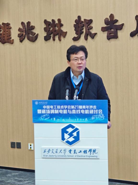 院长助理寇鹏教授,西安庆安电气控制有限责任公司领导杨海斌等三位领导专家分别代表磁场调制电机专委会、高校和企业致辞。曲荣海教授介绍了磁场调制电机领域的最新研究进展,并指出磁场调制电机的应用前景非常广阔。寇鹏教授对各位专家莅临电气学院和全国重点实验室表示热烈欢迎,重点介绍了学院的学科优势以及在磁场调制电机、直线电机领域所取得的成果。杨海斌从产业发展的角度,指出了高转矩密度、高性能电机系统对于装备研发的重要性,鼓励高校和企业加强合作,协同攻关。