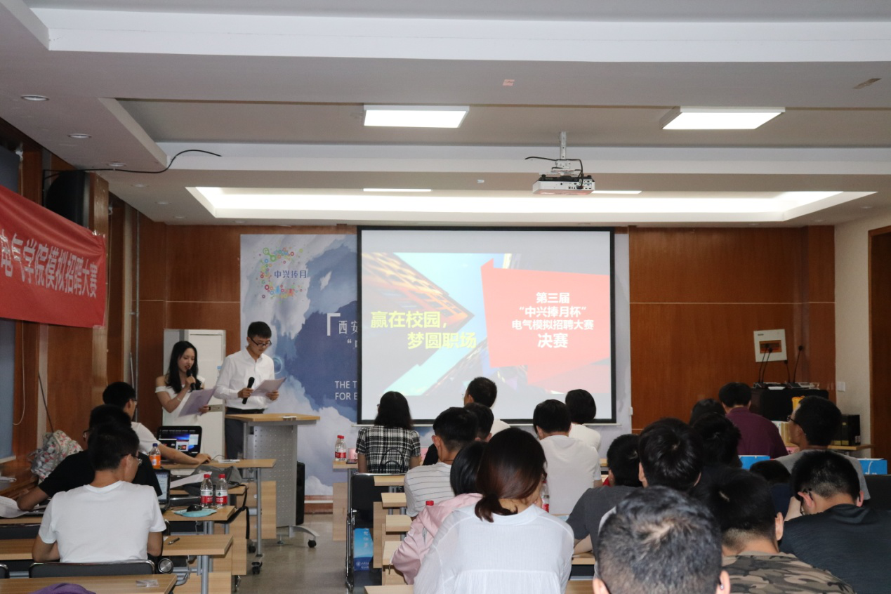 主办、“ZTE兴人类” 俱乐部西交站协助的“中兴捧月杯”第三届电气模拟招聘大赛决赛在电气学院院北会议室顺利举行。