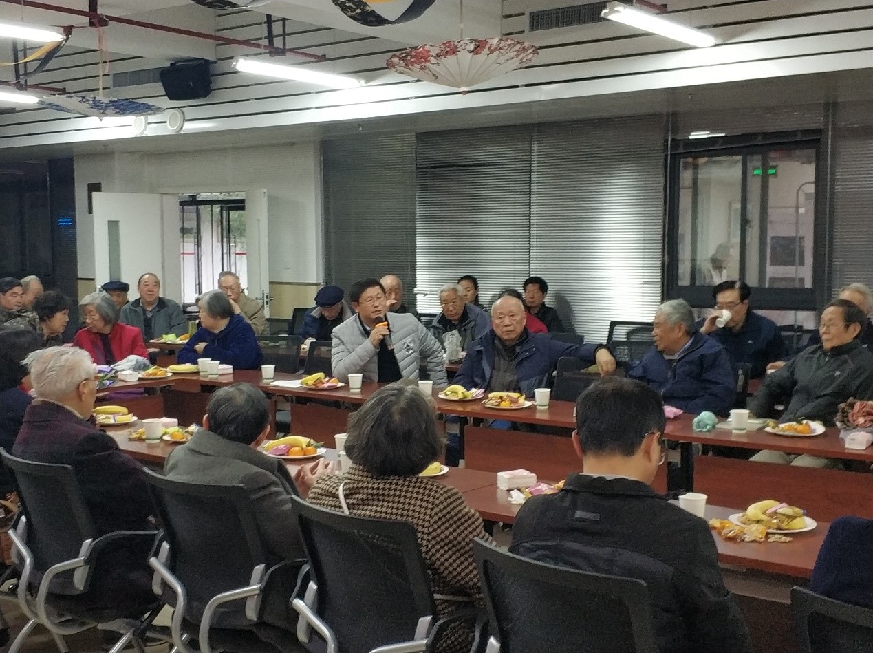 学校离退休处林雪贞副处长向各位老师介绍了学校离退休方面的相关工作以及创新港医养公寓建设进展。看着60余位冒雨赶来的离退休老师,她感慨万千,表示路面湿滑也阻挡不了离退休老师们对学校和学院发展的关心。