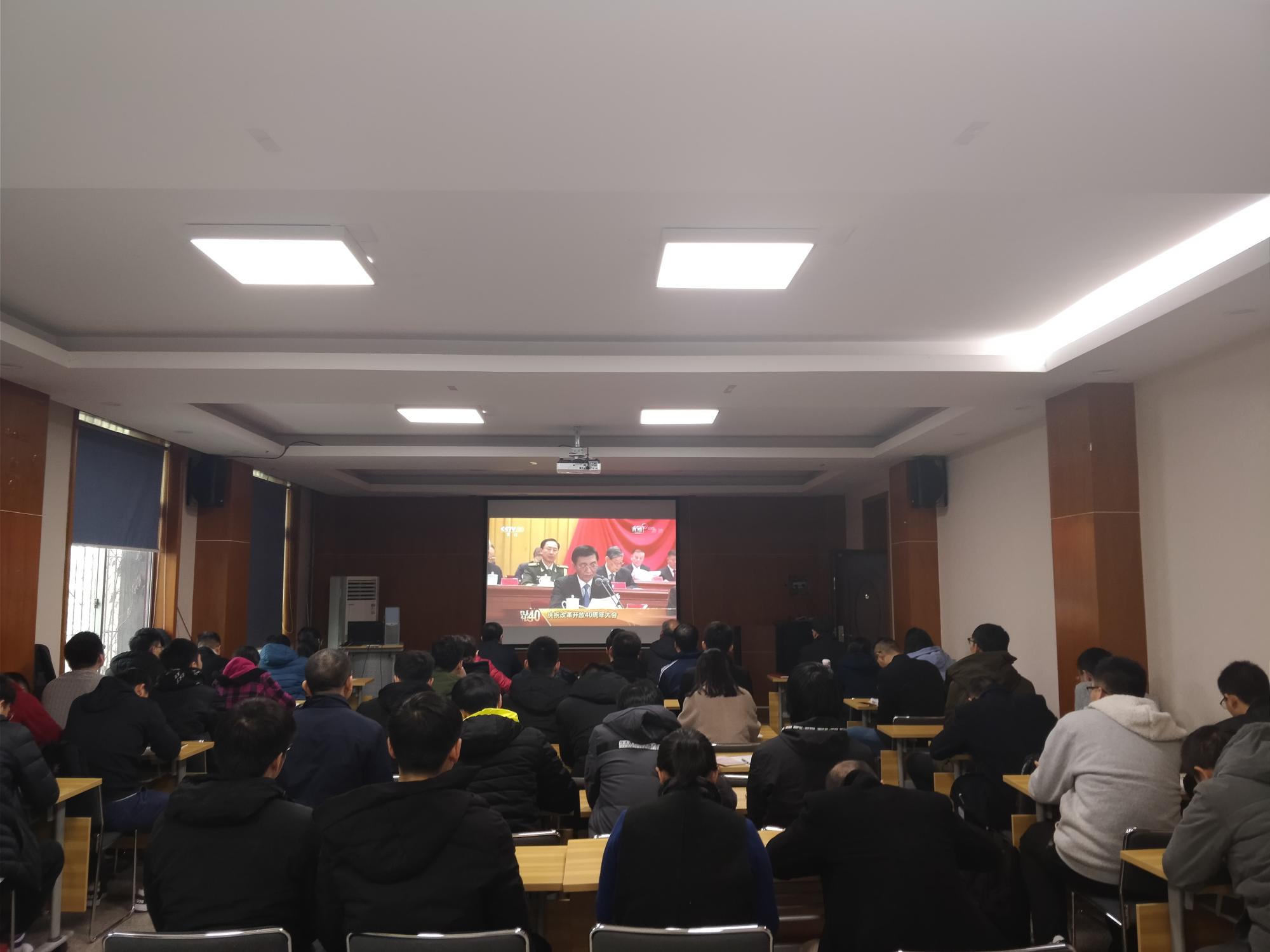 2018年12月18日早上10点,庆祝改革开放40周年大会在北京人民大会堂举行,电气学院党政领导班子、师生代表齐聚学院北会议室观看了大会盛况,聆听了习近平总书记重要讲话,共同庆祝改革开放40周年。