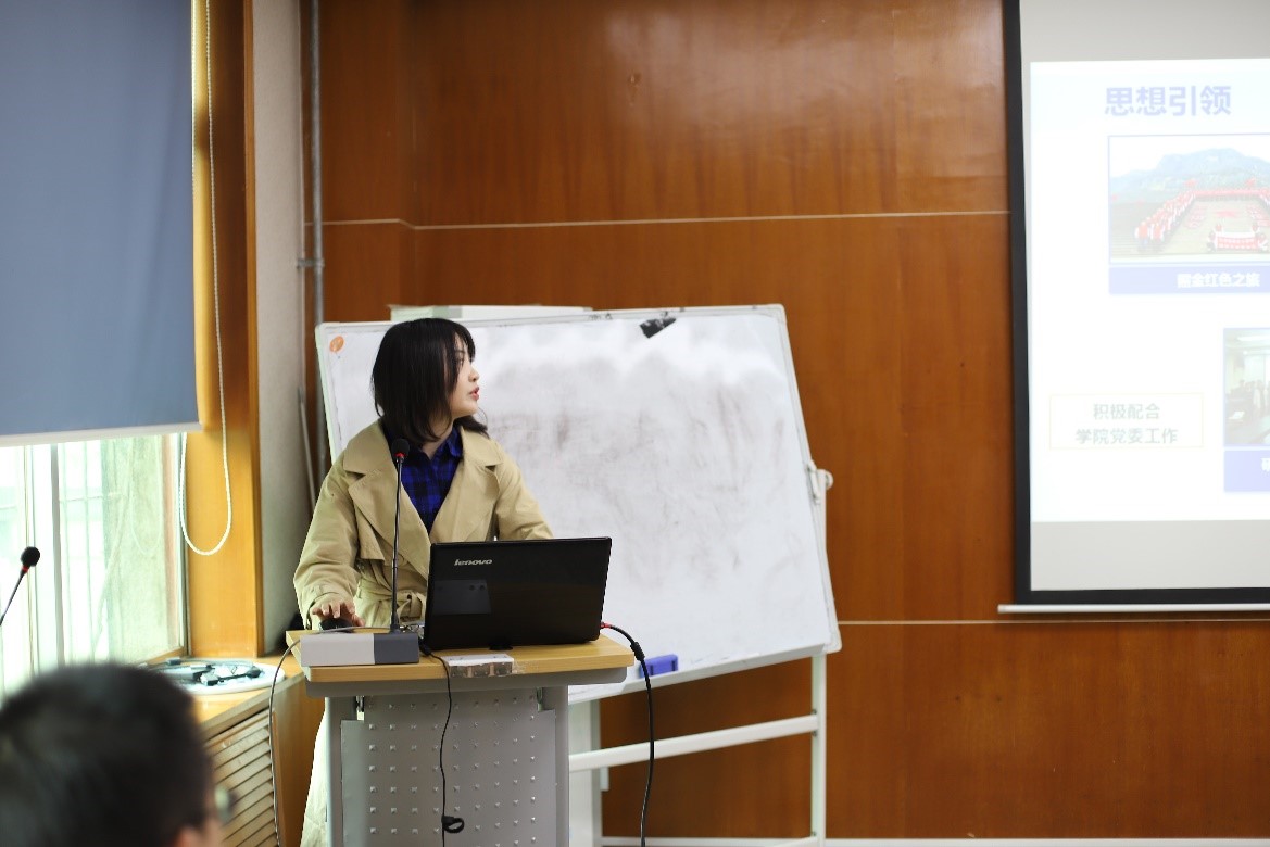 西安电子科技大学机电工程学院研究生会主席吴振宇同学分别从组织架构、特色活动以及学期规划三个方面介绍了机电工程学院研究生会的工作情况。其中,机电工程学院研究生会开展的“研究生光影文化之旅”活动,定期放映经典影片,并邀请专业影评人点评,学院同学分享自己的感悟和体会,在广大同学中取得了良好的反响。
