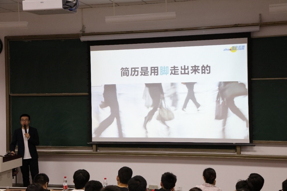 智联招聘校园及国际业务事业部西北区域负责人董德北的讲座,围绕简历制作和面试技巧两大部分进行分享。董老师将简历制作要点总结为内容、措辞和排版三个步骤。在内容准备方面,他展示了一份冗长的简历是如何逐步去芜存菁、突出要点的,以此强调内容的核心是向用人单位传达有效信息。措辞方面,董老师建议经历丰富、简洁到位,在列举经历和成果时,与其干巴巴地罗列头衔和标题,不如有侧重地借助内容展示出相应能力;在表述时,可多举实例、结合具体数字,给人留下深刻印象。排版方面,他坦言相比出奇制胜、色彩斑斓的另类风格,大多数单位更青睐简洁大方的商务设计风;同样内容的简历,在不同的求职意向中,其措辞和排版都应适当调整。此外,他还热心分享了自我背书、star原则等“无领导小组讨论”和结构化面试中值得关注的小技巧。董老师的讲解生动有趣又充满“干货”,频频收获满堂喝彩。