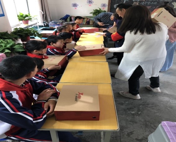 捐赠活动中,支部成员将一份份精心准备的礼物传递到了每个孩子手中,孩子们灿烂的笑容让这一切都看起来是这么的温暖,本次电测支部与滹沱村小学共建的 “力行图书角”,将会秉承交大“力行”的校训,承载习总书记对广大学子的希望与嘱托,在日后激励着孩子们,品鉴书香,躬身力行,成为社会的栋梁之材,为家乡做出贡献。