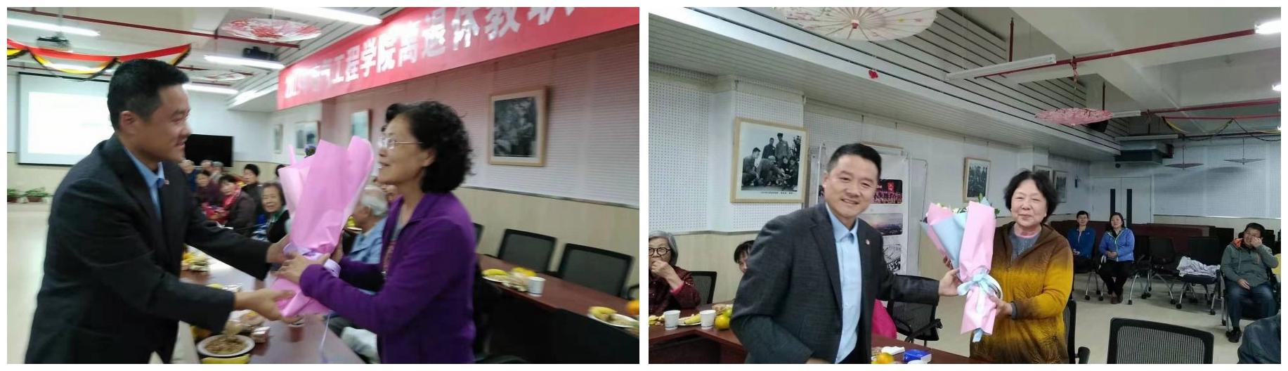 学院和离退休处的领导还分别为今年已满九十岁、八十岁、七十岁的12位退休教职工献上了鲜花。多才多艺的研究生们同时带来了精彩的表演,在歌声、琴声中,大家其乐融融,开心非常。