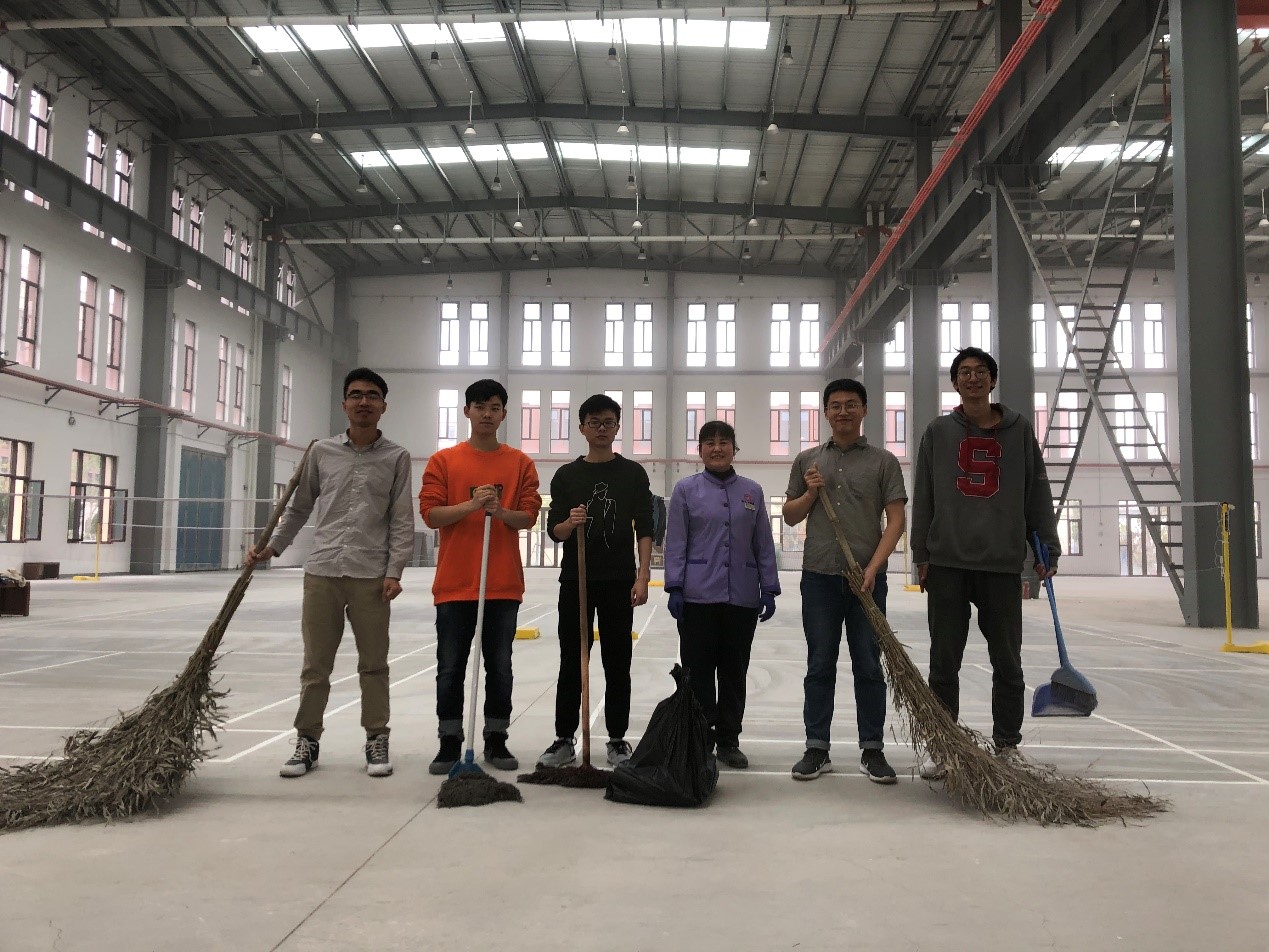 为确定系列志愿服务活动方案,支部支委们与管理3号巨构的新大正物业进行了沟通,讨论了活动开展的可行性,开展形式和具体安排,将第一次志愿清扫活动地定为3号巨构北钢构羽毛球场。该场地自9月投入使用以来长期无人清扫,场地面积大、灰尘厚,杂物多,对在场地内运动的同学造成诸多不便。根据实地调研,支部组织了五位同志参加清扫活动。