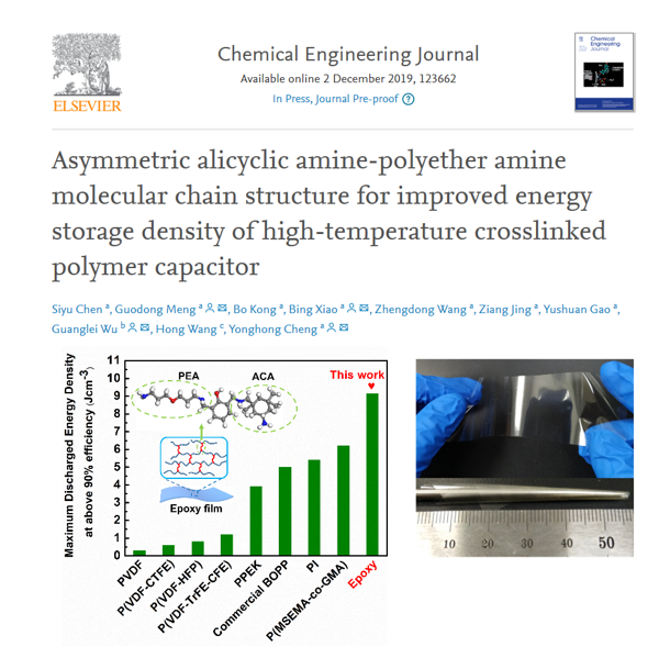 该研究工作以“Asymmetric alicyclic amine-polyether amine molecular chain structure for improved energy storage density of high-temperature crosslinked polymer capacitor”为题,在线发表在国际化学工程领域顶级期刊Chemical Engineering Journal(实时影响因子10.06),该工作第一完成单位为快看漫画