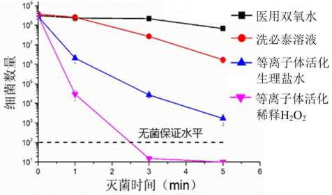 等离子体是与气体、液体、固定并列的物质第四态,工业应用的低温等离子体通常采用高压放电产生。等离子体活化水是低温等离子体与水溶液(生理盐水、高倍稀释H2O2等)作用之后产生的,含有O3、OH、O2-、ONOOH等多种活性物种,具有很强的生物与化学活性,能够高效杀灭微生物。以耐甲氧西林金黄色葡萄球菌(一种超级细菌)为例,等离子体活化水可在5分钟内杀灭6个数量级以上,显著优于医用双氧水、洗必泰溶液等消毒剂。团队开发的等离子体活化水消毒设备每分钟可制备80 mL的等离子体活化水,满足医院病房和家庭用于物表消毒的需求。除此之外,等离子体活化水还可用于治疗感染性疾病,对人体副作用小,相关动物和临床试验已在西安交大一附院、西安交大二附院、北部战区总医院开展,取得了良好的效果。例如,对腹腔感染诱发脓毒症的动物实验治疗效果显著优于常规疗法,研究结果以封面论文发表于重症领域国际权威期刊。