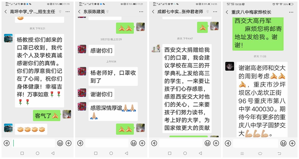 为为成都七中,重庆南开中学等四川重庆两地30余所优秀生源基地捐赠了24000只口罩,送去了支持与鼓励,当高考之战迎上疫情之战,我们更加需要秉持初心,坚定信念,调整状态,奋勇拼搏。