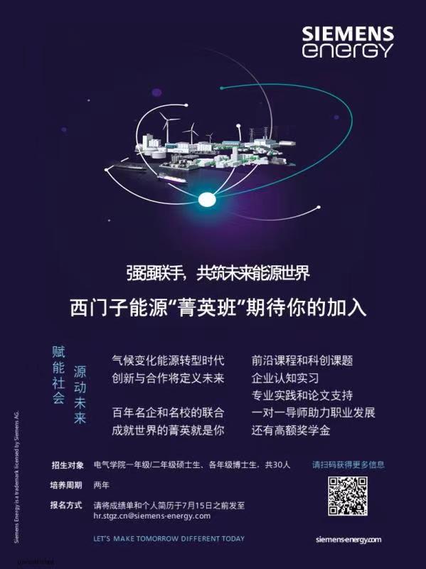 3. 录取:与西门子能源有课题的导师所指导的学生, 以及毕业后有意向进入西门子能源工作的学生,将获得优先录取权。综合笔试、面试成绩及上述有限条件,确定最终入选学生名单。候选名单公示在学院网站,公示期 3 天。如无异议,公示期结束后正式录取,有意向学生同步签订三方协议。