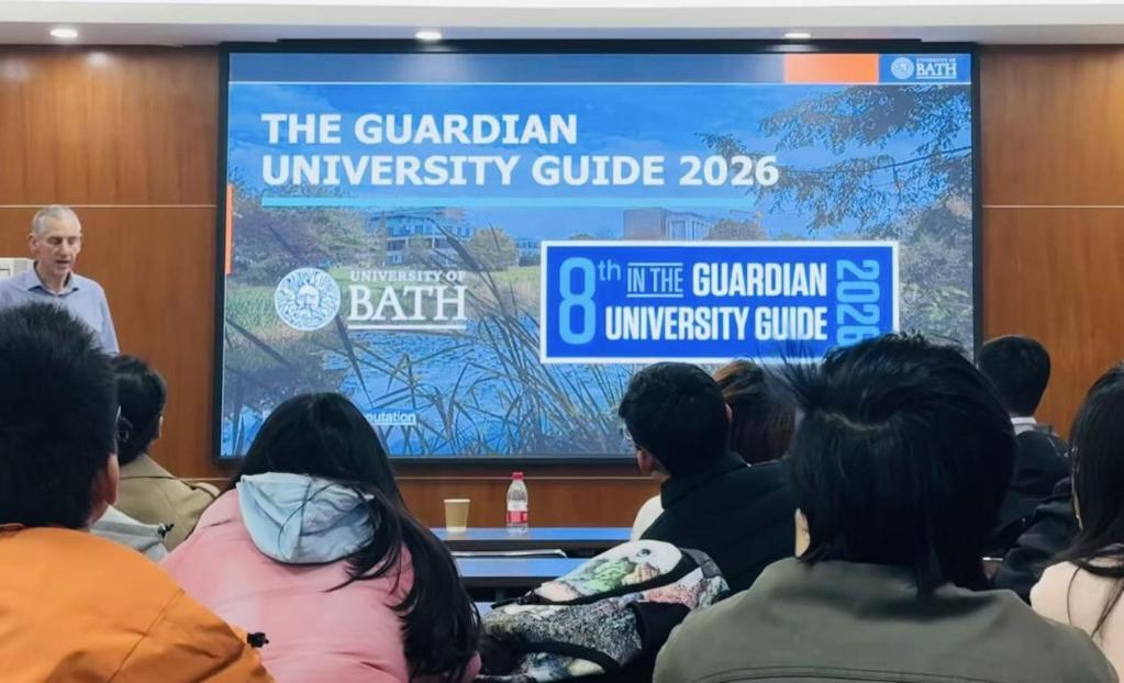 大一、大二学生积极参与,在问答环节,同学们踊跃提问,问题涉及巴斯大学在全球的学术排名、项目费用、奖学金机会以及毕业生就业前景等,Adrian教授与祝令瑜副院长、马璐老师一一作出细致解答,现场气氛活跃。