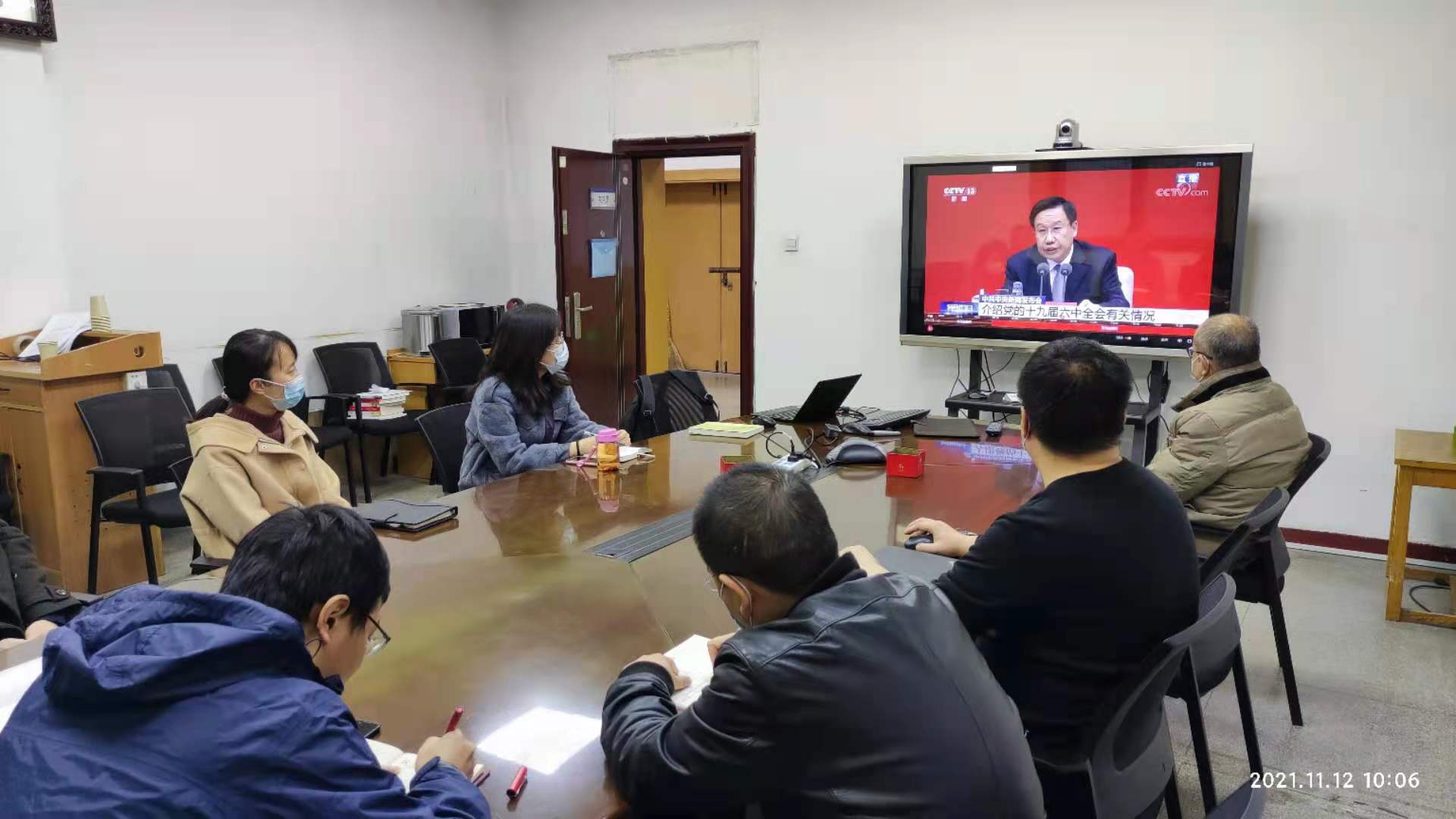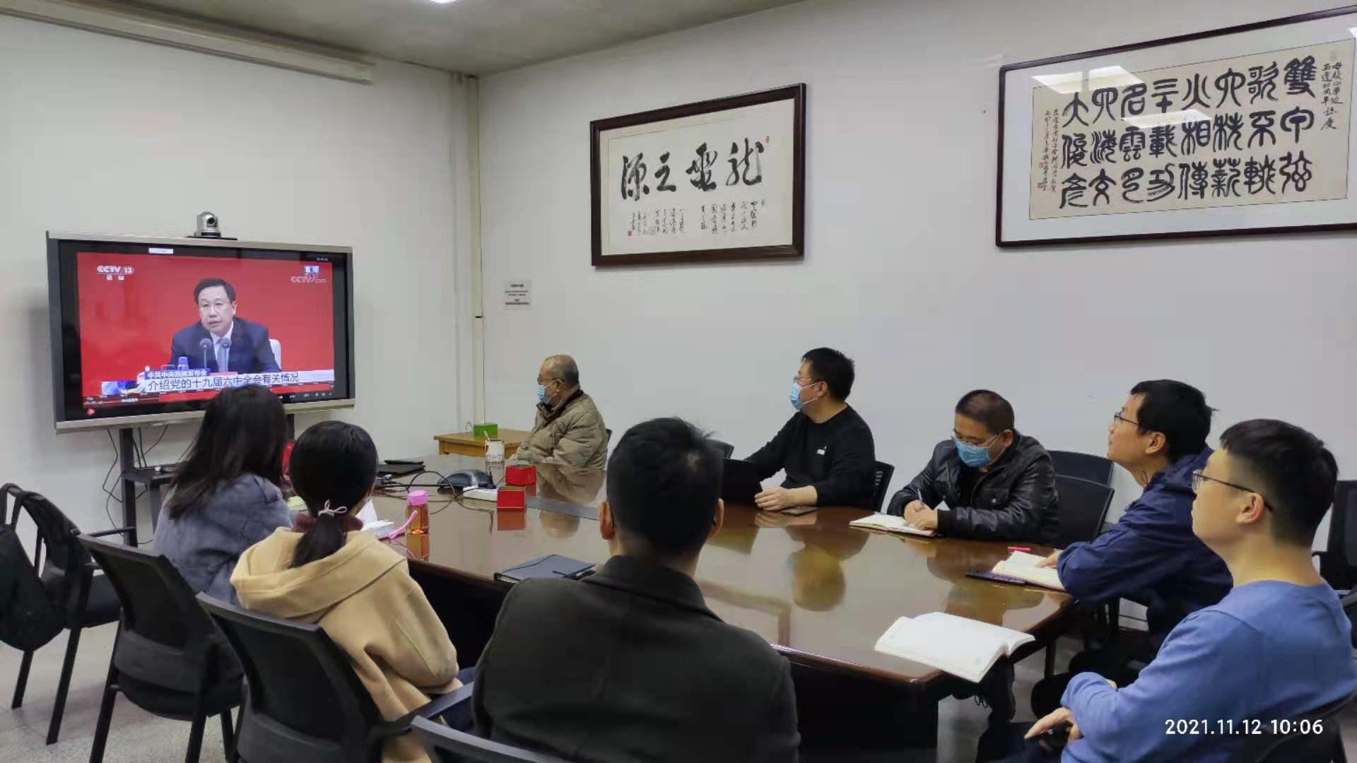 2021年11月12日,发电党支部组织党员在发电教研室115会议室集中观看十九届六中全会新闻发布会。