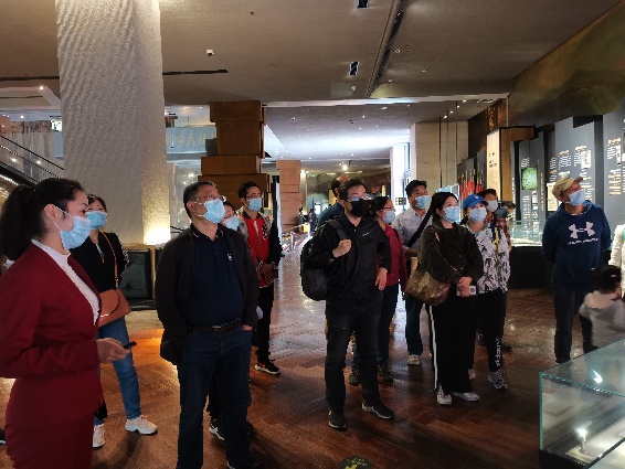 下午第一站陕甘边革命根据地照金纪念馆,一踏入纪念馆,岩板石片铺就的地面与气势恢宏的铸铜雕塑便将人带入肃穆庄严的氛围中,之后实践队员以陕甘边革命历史为主线,参观了纪念馆。展柜里陈列的生活用品和图文资料再现了上世纪30年代初老一辈无产阶级革命家创建陕甘边革命根据地的场景和照金苏区人民英勇战斗的故事。
