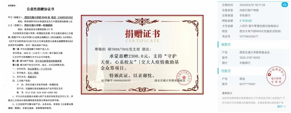 疫情当前,电气学院研究生党员纷纷在自己力所能及的范围内发光发热,缴纳特殊党费,对接所在社区需要,让党旗在防控一线高高飘扬。电气学院面向全体研究生党员发起“爱心捐赠抗疫情,守望相助盼春来”捐助活动,截至3月3日,电气学院各研究生党支部通过西安交大教育基金会、第一附属医院、北京韩红爱心慈善基金会、腾讯公益、等渠道共计捐款205人次,累计捐款13206.3元。截至3月5日,680名研究生党员缴纳特殊党费,累计缴纳35624.8元。各支部党员因地制宜,共计24人次参加了所在村镇和社区的志愿服务活动,参与到联防联控工作一线。