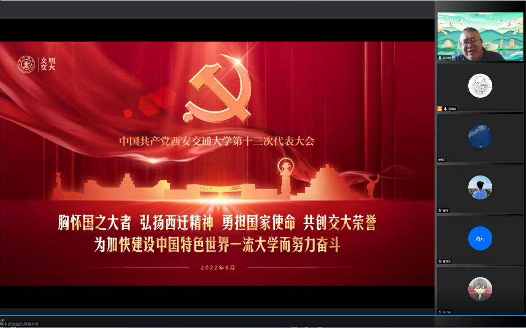 第十三次代表大会精神,按照学院分党委要求,7月6日,郝治国副院长赴发电博士生第二党支部开展专题宣讲。宣讲以线上的方式进行。宣讲会由发电博士生第二党支部书记刘晓明主持,支部全体党员参加。