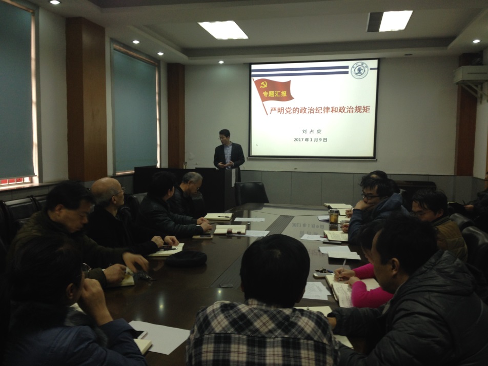 “两学一做”宣讲团成员、马克思主义学院马克思主义与社会发展研究所刘占虎博士作“严明党的政治纪律和政治规矩”的专题报告会。