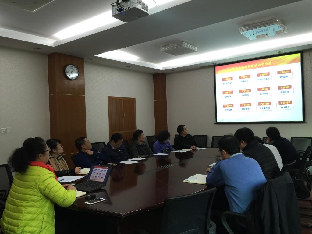 别朝红书记通过全面从严治党、领导核心、党内政治生活、党内监督、纪律严明、党内民主、反对腐败、高级干部、权力监督、群众路线、民主集中制、选人用人等十二个关键词,解读了十八届六中全会精神。党的十八届六中全会深入研究全面从严治党,就新形势下加强党的建设作出新的重大部署,别朝红书记提出,各支部要组织全体党员认真学习贯彻全会精神,深刻领会十二个关键词,牢固树立政治意识、大局意识、核心意识、看齐意识,继续推进全面从严治党,共同营造风清气正的政治生态。要把学习六中全会精神与“两学一做”结合起来,不断强化使命意识和责任担当。