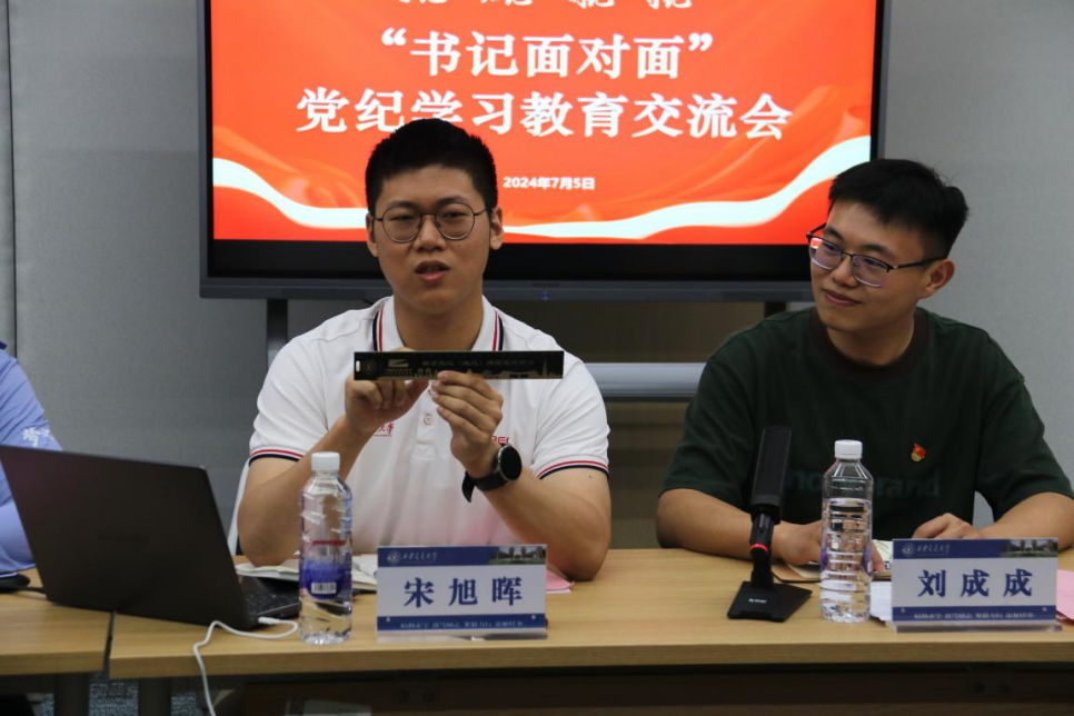 硕2063班党支部书记徐铭乾说:“我们要从细节处防微杜渐,在苗头阶段察觉问题;从自己做起,守住纪律底线,严格要求支部党员严格遵纪守纪;要由近及远,在青年阶段系好扣子。”