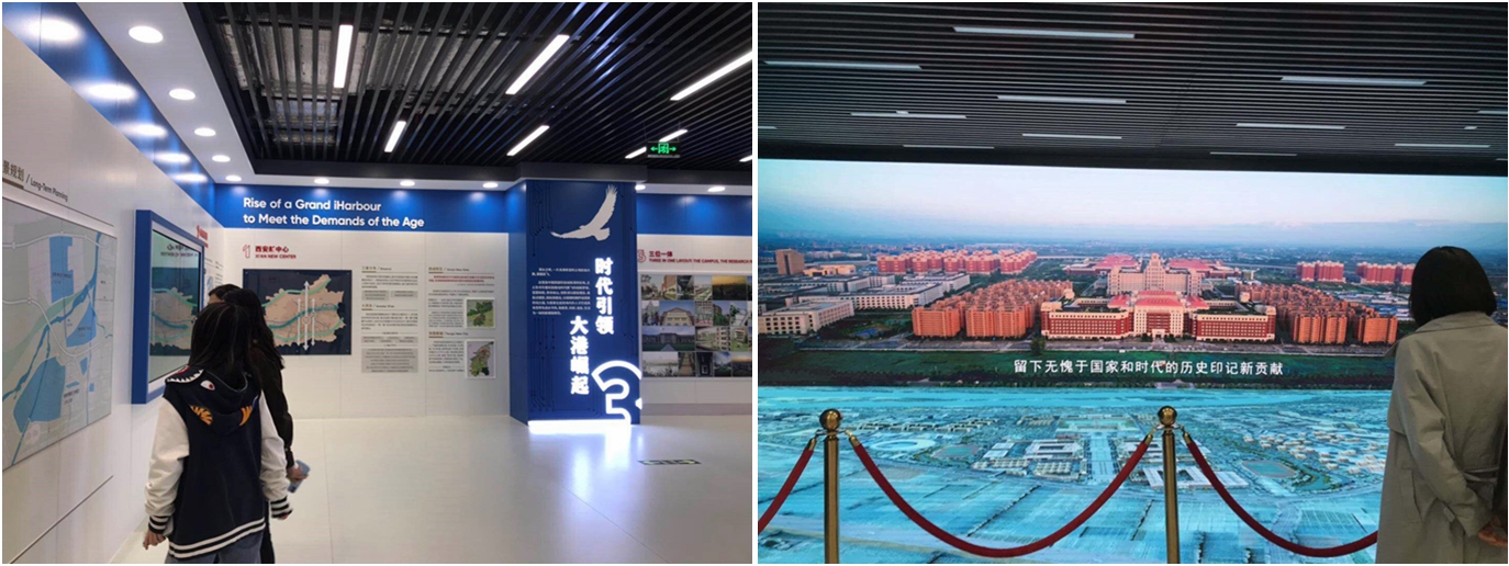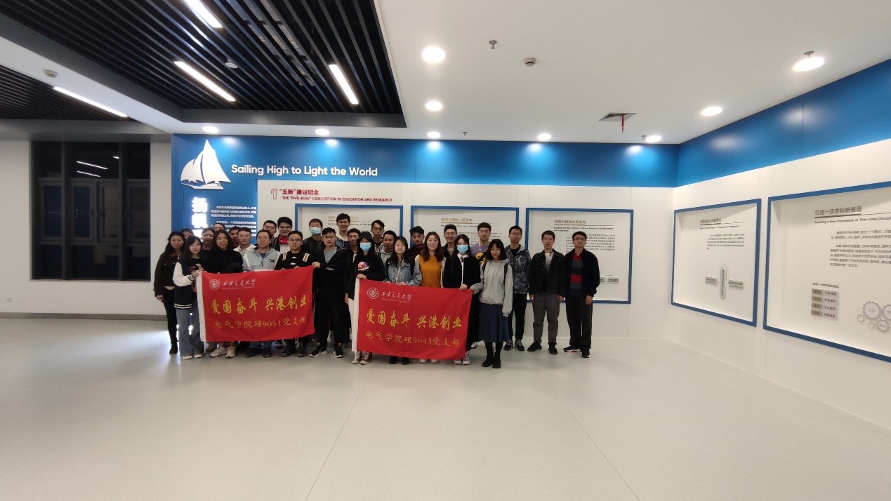 硕9043党支部与硕9051党支部联合参观创新港数字展厅。展厅分成若干个模块采用影视动画,图形数字和多媒体技术对交大的校史和创新港科研平台进行了介绍。参观学习过程中,同学们一一拿起手机拍照留念,并且讨论纷纷,在直观感叹中国西部科技创新港作为5G智慧学镇的现代化的同时,对“西迁精神”也有了更深层次的体会。