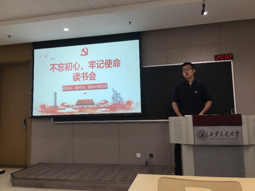 为深入落实“不忘初心、牢记使命”主题教育的学习要求,读原著,悟原理,不断提高党员的思想觉悟,增强党性修养,12月4日晚,电气学院硕9042、9043和9044班党支部在创新港联合开展 “不忘初心,牢记使命”读书会活动。各支部党员分享《习近平关于“不忘初心,牢记使命“论述摘编》相应章节的学习心得与体会。该活动由9044党支部书记谷宇豪同志主持。