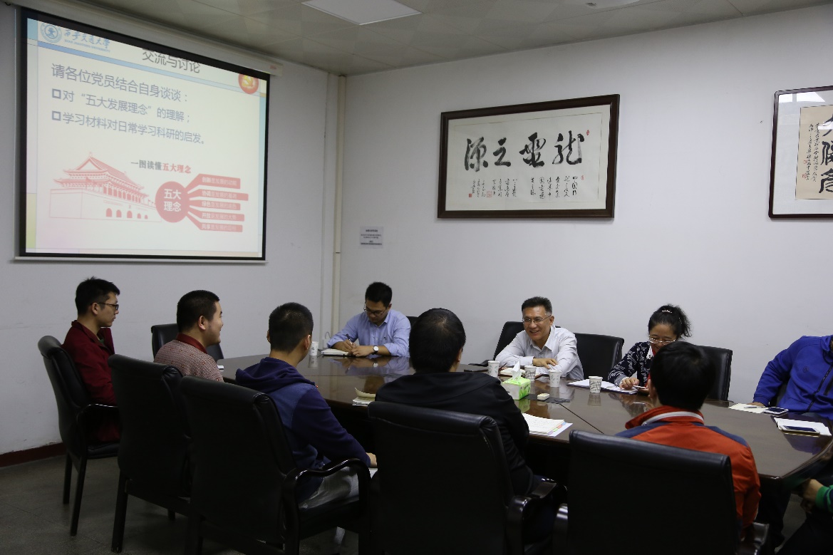 听了王小力常务副书记及学院别朝红书记的讲话,支部党员更加深刻地理解了“五大发展理念”的内涵。支部书记曹晓宇在总结中表示,博1508支部党员一定不辜负学校厚望,做合格的博士生党员。