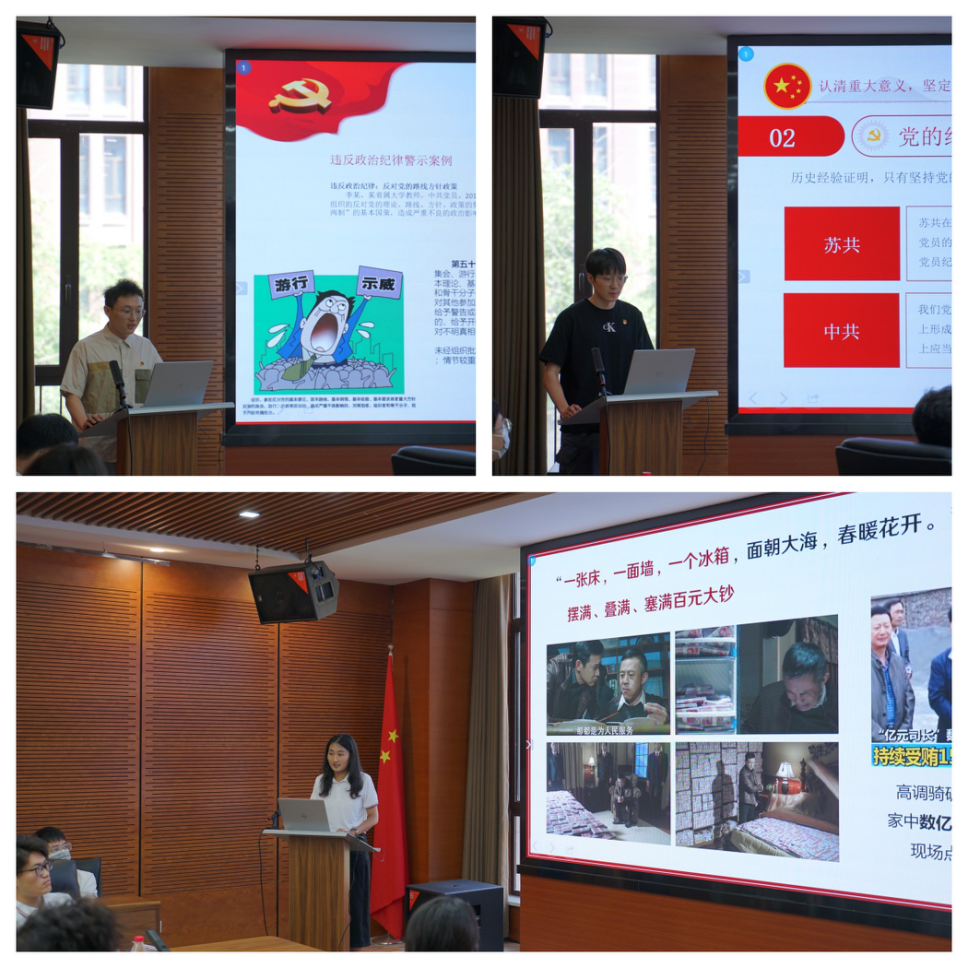 活动伊始,三个党支部分别就组织架构、成员构成、工作进展和党史党纪学习情况等方面进行了全面汇报。各支部严格按照上级党组织的要求,定期组织党员学习党章党规、党纪处分条例,通过纪律教育不断提升党员的纪律和规矩意识,不断强化党员的纪律意识,推动全面从严治党向基层延伸。