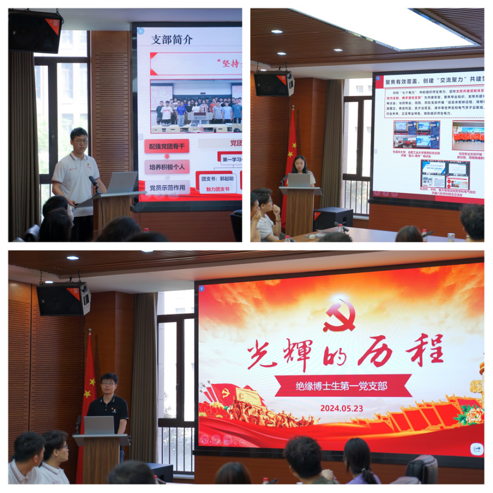 三个党支部的党员同志分别从不同角度围绕党纪学习教育开展学习交流。硕3065党支部的郭起聪详细解读了“六大纪律”,尤其是廉洁纪律,通过“不敢腐、不能腐、不想腐”一体推进的历史演变,鼓励党员们要实现自律向自觉的转变,进而坚守正道,推动全面从严治党不断深化。硕3070党支部的庄毅着重强调了党员干部的党性教育和党纪遵守,通过案例警示党员干部要时刻自我约束,坚决维护党的整体形象和严明的纪律性,走好网上群众路线。绝缘博士第一党支部的徐浩从违纪典型案例入手剖析条例,强调党员必须严守党纪,坚持廉洁,以身作则,引导身边同志从案例中汲取教训,不断提升党性修养和工作水平。