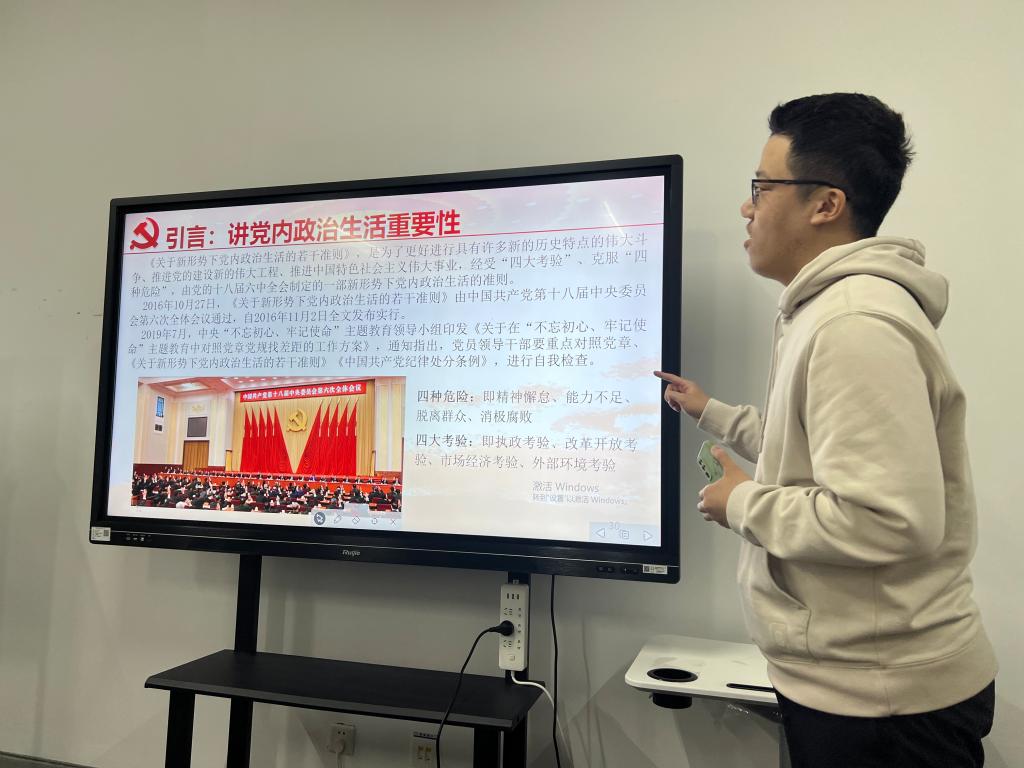 王锴围绕《关于新形势下党内政治生活的若干准则》进行了详细讲解,首先阐述了党内政治生活对于保障党内民主、增强党的团结统一与战斗力的基础性作用。通过细致剖析《准则》的三大板块、12个具体部分,并结合六条具体措施,引导同学们认识到规范党内政治生活的重要性,号召大家将《准则》要求内化于心、外化于行,不断提升个人政治素养与党性修养,强化党员的责任担当与使命感。
