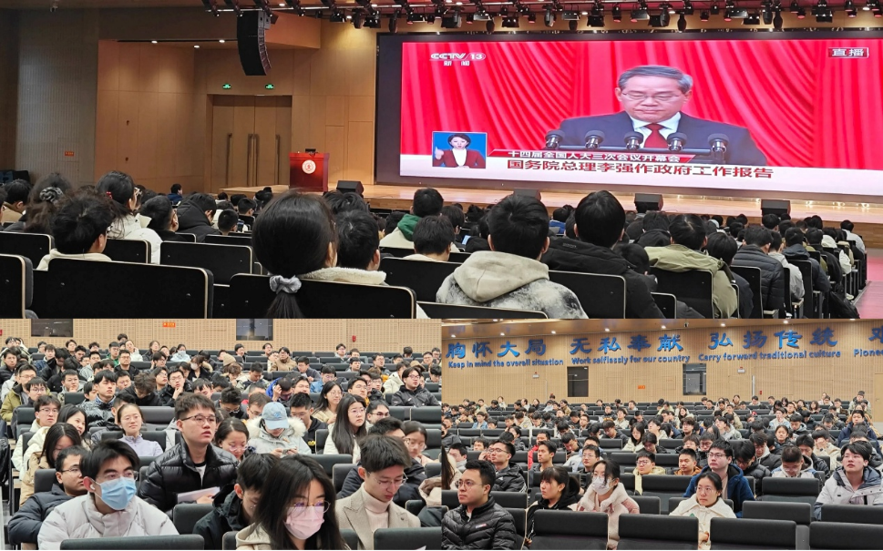 3月5日上午9点,快看漫画 在涵英楼5-2E201千人报告厅组织开展“聆听两会声音,践行青年担当”主题教育活动,300余名硕博研究生集中观看第十四届全国人大三次会议开幕会直播,同步学习政府工作报告,沉浸式感悟国家发展脉动。