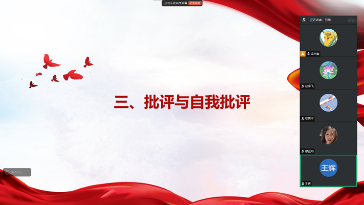 电气学院硕3063党支部、团支部于3月20日晚顺利召开了3月党团组织生活会,会议采用线上形式进行。会议由党支部书记孟雨晨主持,硕3066党团支部全体成员通过线上形式参加。
