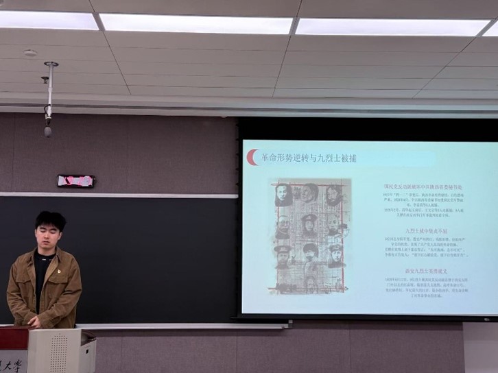 硕3079党支书林升同志带领同志们学习了先烈事迹,感悟英烈精神。林升同志细致地讲解了西安九烈士从1927年“四一二”事变陕西革命形式逆转,到九烈士被捕后在狱中坚贞不屈,再到西安九烈士英勇就义的红色历史,同志们受到了极大的触动,激发了大家的强烈爱国情怀。