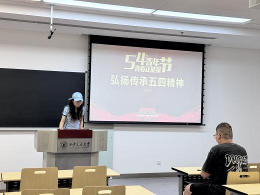 会议第一部分,刘佳潼同志讲述了五四精神。她从五四运动的历史背景切入,系统梳理了运动的发展过程,说明其不仅推动了国家政治觉醒,也开启了思想解放的新时代。在此基础上,她强调五四运动为马克思主义在中国的传播奠定基础,标志着新民主主义革命的开端。结合时代发展,她指出五四精神已经演化为解放思想、与时俱进、开拓创新的价值导向,以此勉励青年坚定理想信念、增强责任担当,在实现民族复兴的道路上不断奋进。
